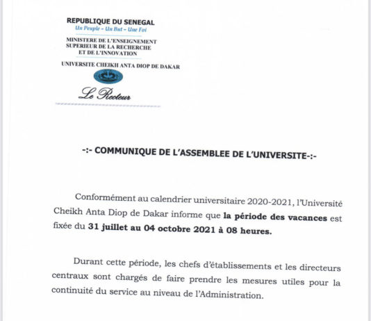 L’Ucad fermée du 31 juillet au 4 octobre 2021
